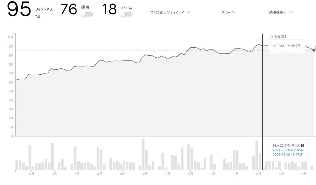 まだ、FTPは4倍まで来ていない。20分4倍も怪しい。まずはここのクリアが直近の目標。6月に一気に、クリアできると良いのですが・・・。