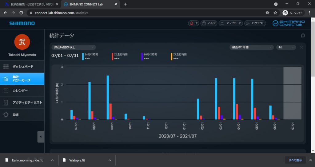 自分で期間を設定し保存したり、表示する項目を設定し保存したりできる。カスタマイズが自由に出来るのはうれしい感じはしています。Stravaでは、期間別のTSSの合算やパワーゾーンの合算が見れないので、SHIMANO CONNECT Labでそういった所は補っていければとは思います。