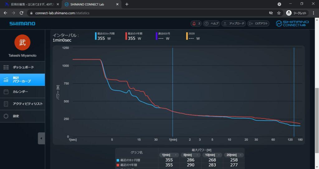 パワーカーブも期間を自分で設定したものが選択できるので、期間別での比較がしやすいと思います。過去と現在を比較も簡単にできるので、非常に良いと感じてます。