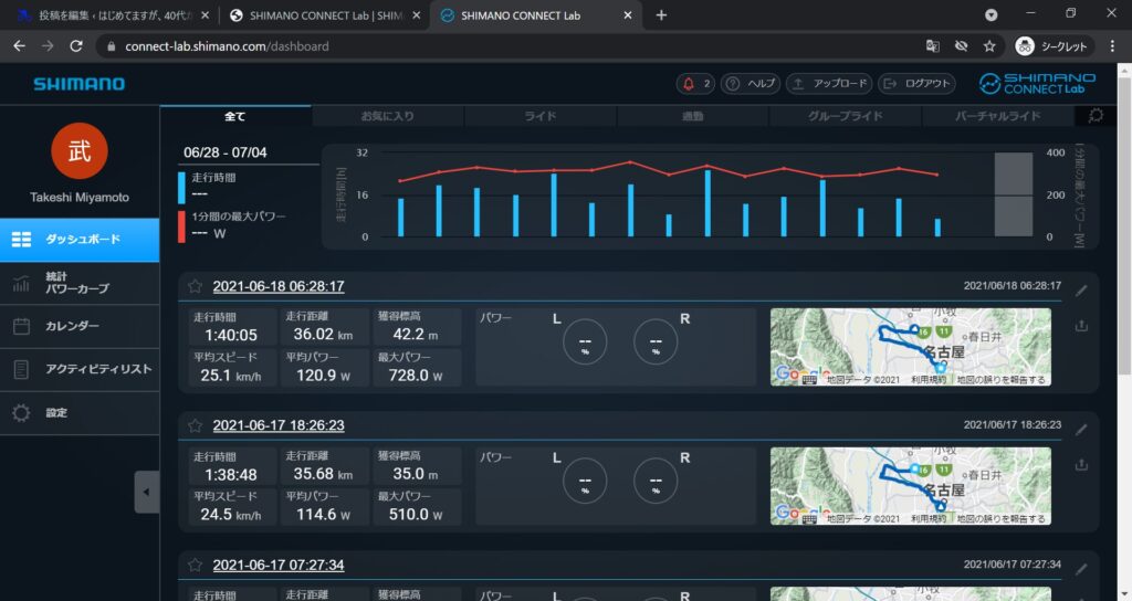 でも上記を行うには、例えばだが、Stravaなどから.fitデータをDLしてSHIMANO CONNECT Labへアップロードする必要がでてくる。正直その点は少々手間を感じところではある。