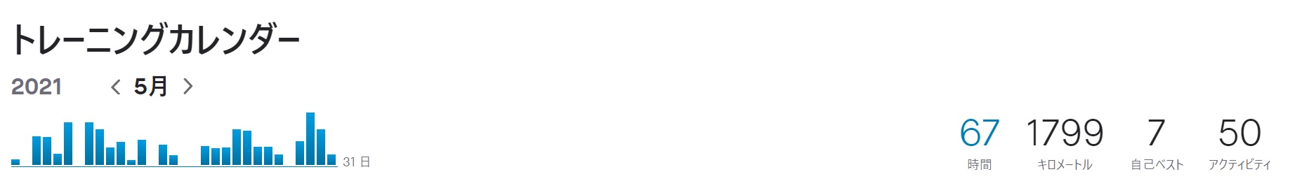 継続は力を信じて距離を乗る事を継続。5月はGWがあるので、距離を稼げるとおもいましたが・・・それでも粘り強くマイペースにコツコツと進められたともいます。自分の体との付き合い方を考えさせられる期間に入ってきたと思います。